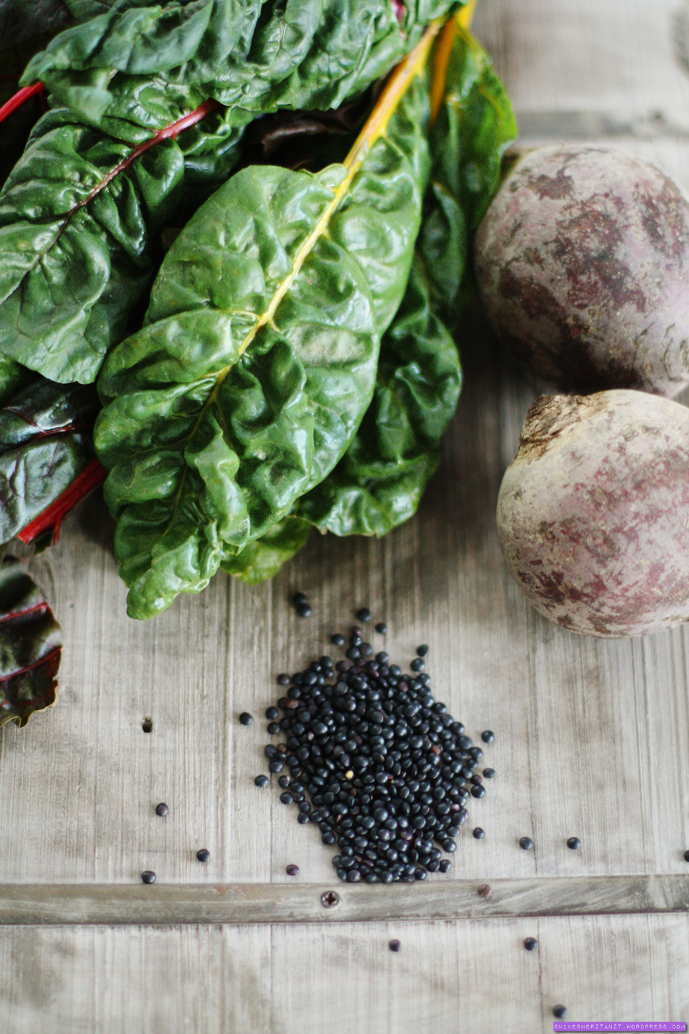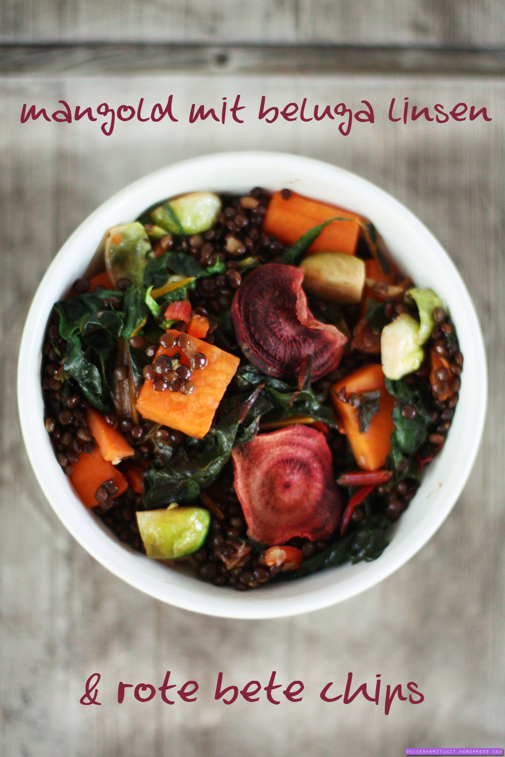mangold mit belugalinsen & rote bete chips